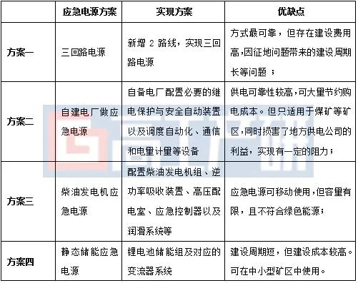 传统矿区作业环境较为恶劣,尤其是供电系统问题频发,这就使得矿区供电系统的安全性和可靠性至关重要。因此,为解决矿区供电系统问题,在满足《煤矿安全规程》规定的电源线路要求的同时,有必要增配应急电源系统。